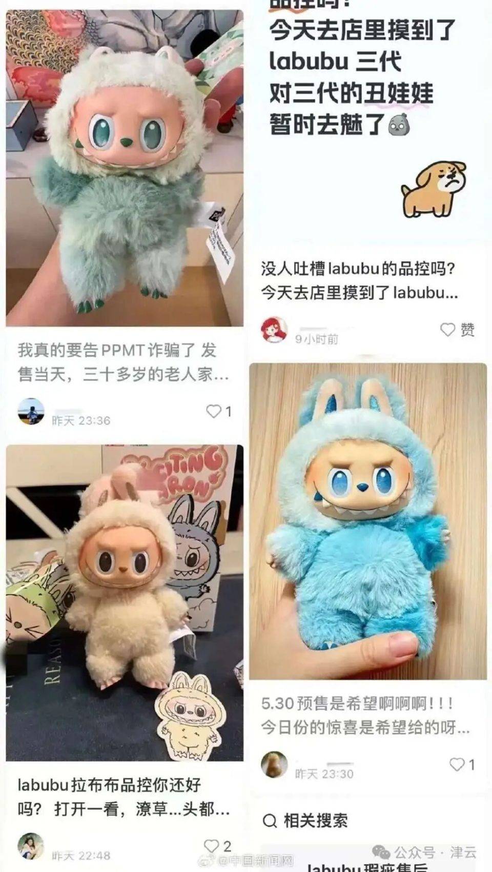 小红书、微博上,“掉漆、歪头、缝线粗糙、黑点、露棉花”的吐槽笔记超过千条。有消费者为了换一个合格的Labubu,前后折腾了四次。