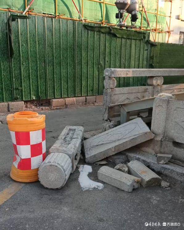 1月21日,情报员“G65841”向齐鲁晚报官方客户端齐鲁壹点情报站发来报料称,泰安市泰山区东岳大街华侨大厦楼下,石头柱子不明原因倒地破损,情况已持续许久。破损石柱存在极大安全隐患,希望有关部门及时清理。