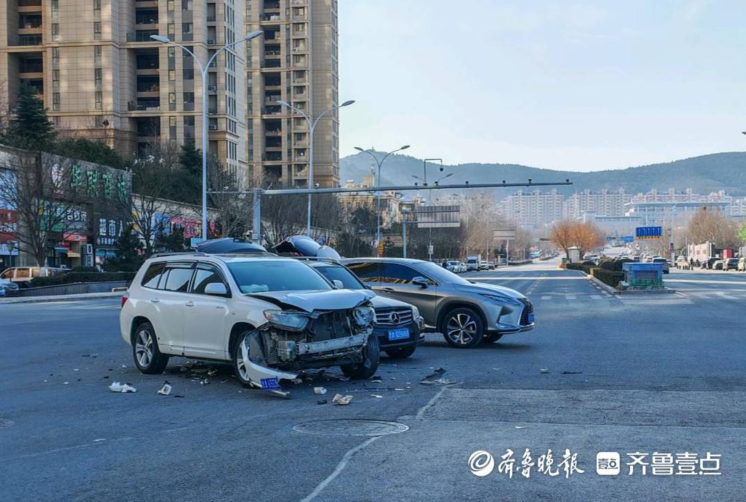1月21日,情报员“朱翕”向齐鲁晚报官方客户端齐鲁壹点情报站发来报料称,21日上午在济南市凤歧路和兴港路交叉口两辆SUV汽车相撞,白色SUV车头受损严重,碎片散落一地。