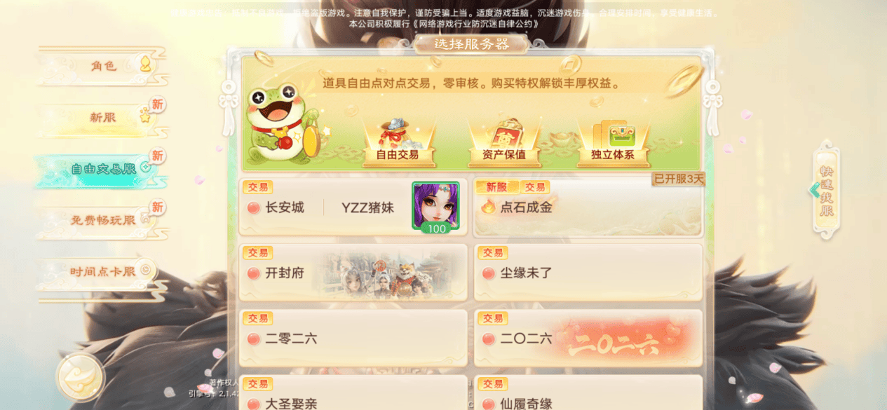 总的来说,大话官方在交易服这一块做得确实不错,比如相较于长安城老区,官方二〇二六通过双服分流机制优化体验,吸引超500万玩家入坑,进一步巩固大话手游的搬砖生态优势。