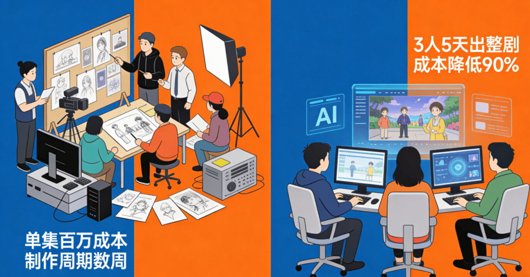国家及地方层面全力扶持AI漫剧发展:广东将其纳入虚拟制片支持,北京强化版权保护,多地出台AIGC专项补贴及出海扶持政策,推动行业合规化、精品化发展。相较于其他创业赛道,AI漫剧有明确的政策导向,只要合规备案,就能安心运营,无需担心政策红线. 技术革命降本增效,彻底打破行业门槛