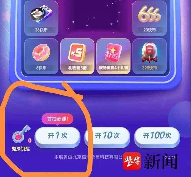 “必赚属于确定性承诺,但询问客服,回复是必赚礼物,这明显是狡辩嘛。”张先生告诉记者,在其他的广告语中,如“一发入魂三飞船”“翻倍狂飙8倍”等都属于高爆率宣传,既是诱导,也是虚假宣传。比如,“未来飞船”价值1万元,100元钱抽一次。可实际上“一发”(抽一次奖)只能获得单个礼物,最多也就一个“未来飞船”。也就是说,他根本就没有3个“未来飞船”这一奖项,其中奖概率为零。